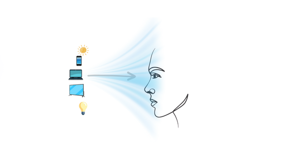 A luz azul é uma parte do espectro de luz visível, com comprimentos de onda mais curtos e maior energia. Ela está naturalmente presente na luz solar — o que é positivo e necessário — mas também é emitida em grandes quantidades por ecrãs digitais como telemóveis, computadores, tablets, televisões e iluminação LED.